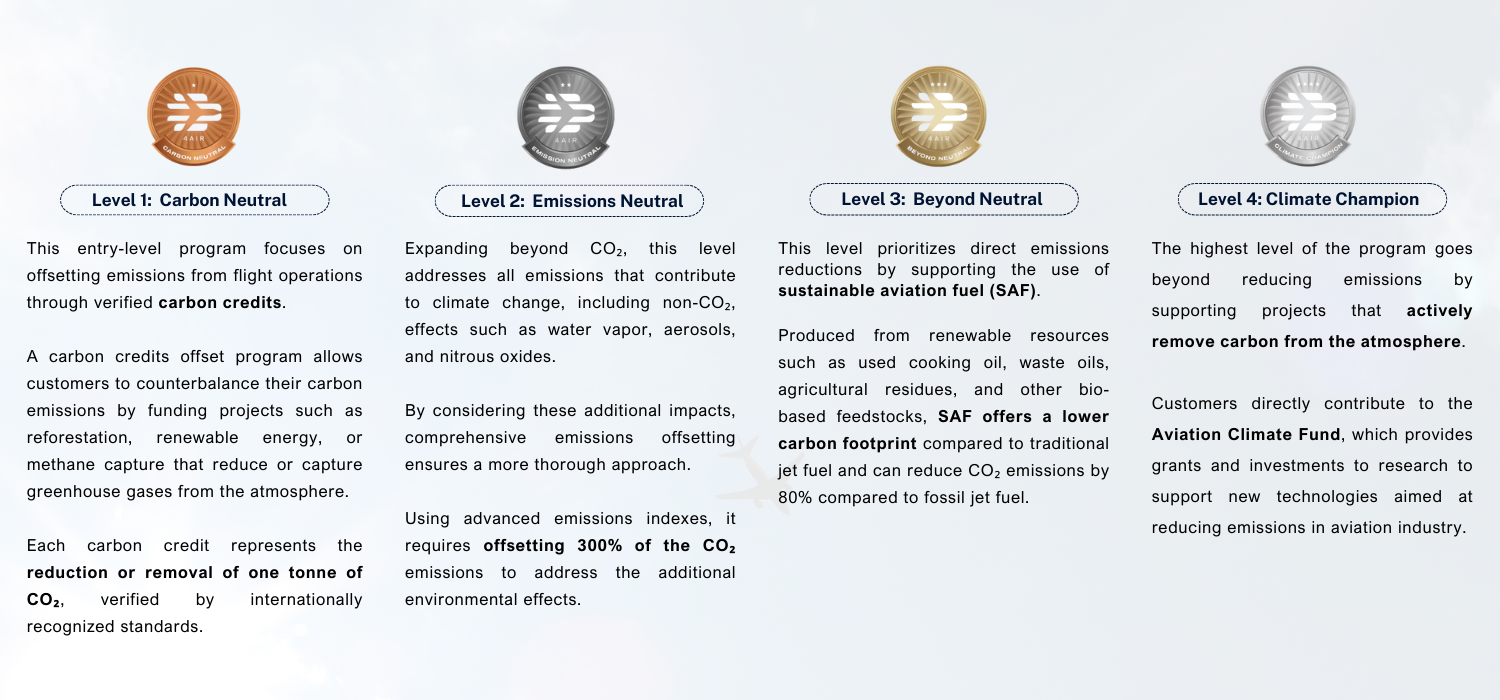 Through this partnership we provide our customers access to their four-level sustainability program, designed to address various aspects of aviation’s environmental impact. This program is voluntary and allows customers to choose the level of sustainability they want to achieve.