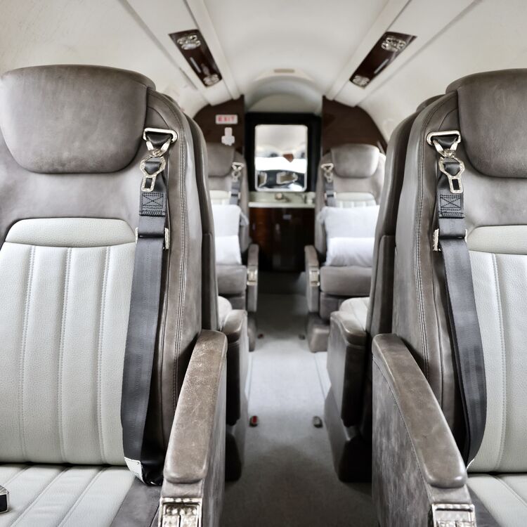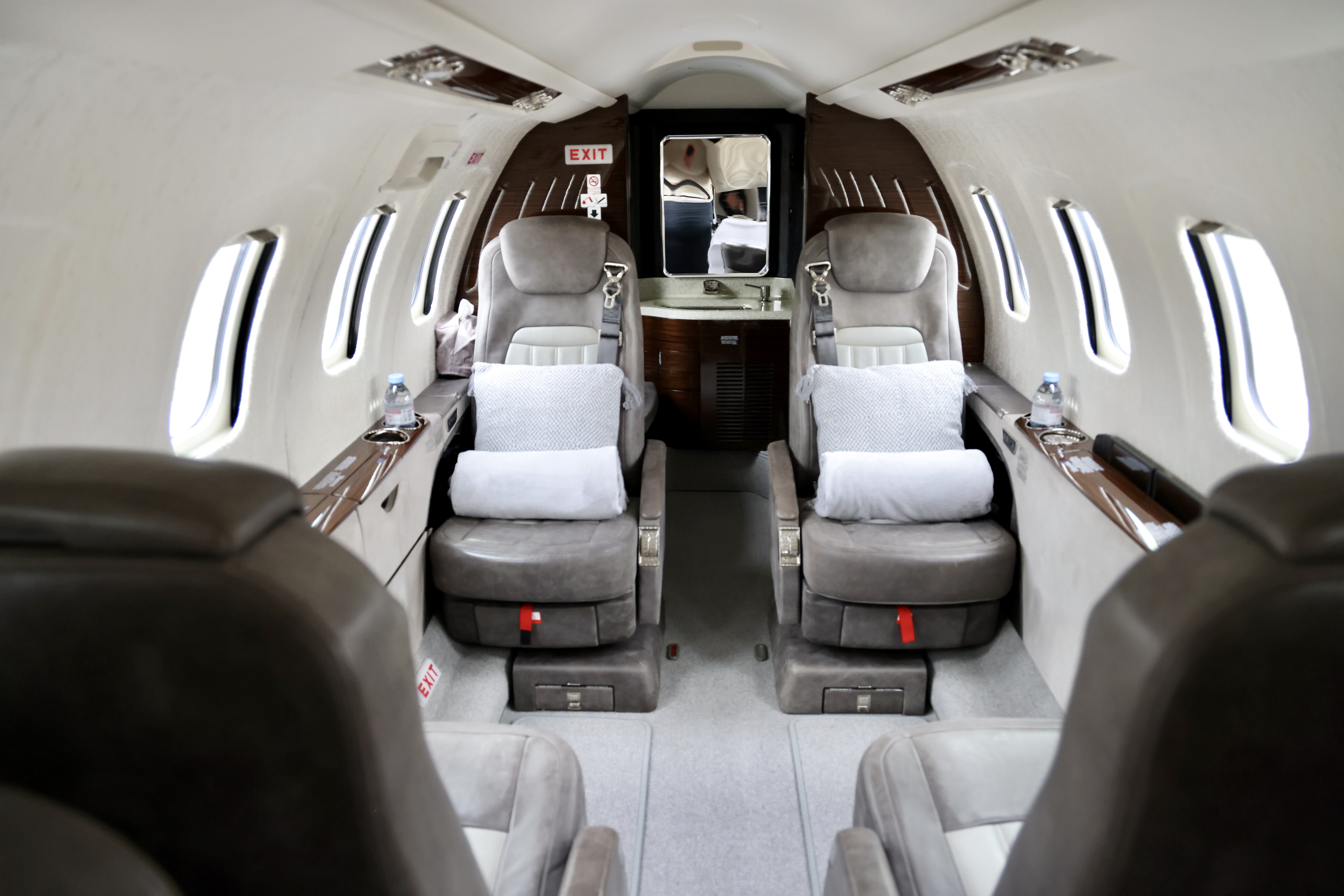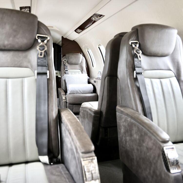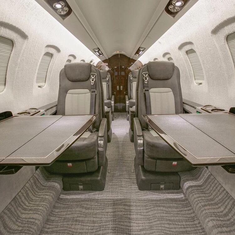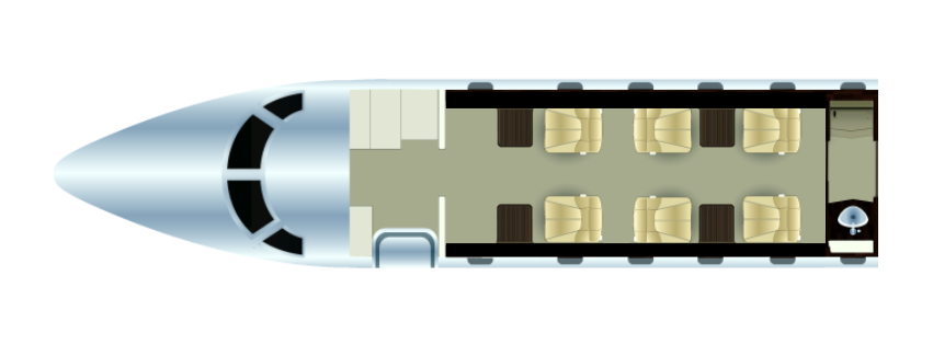 V prostorné a luxusní kabině může cestovat až 6 pasažérů – 2 VIP sedadla v přední části a 4 klubová sedadla v zadní části, každé s vlastním stolkem pro práci či odpočinek.