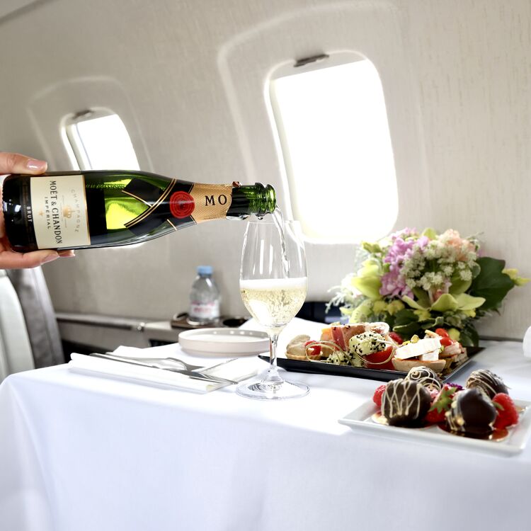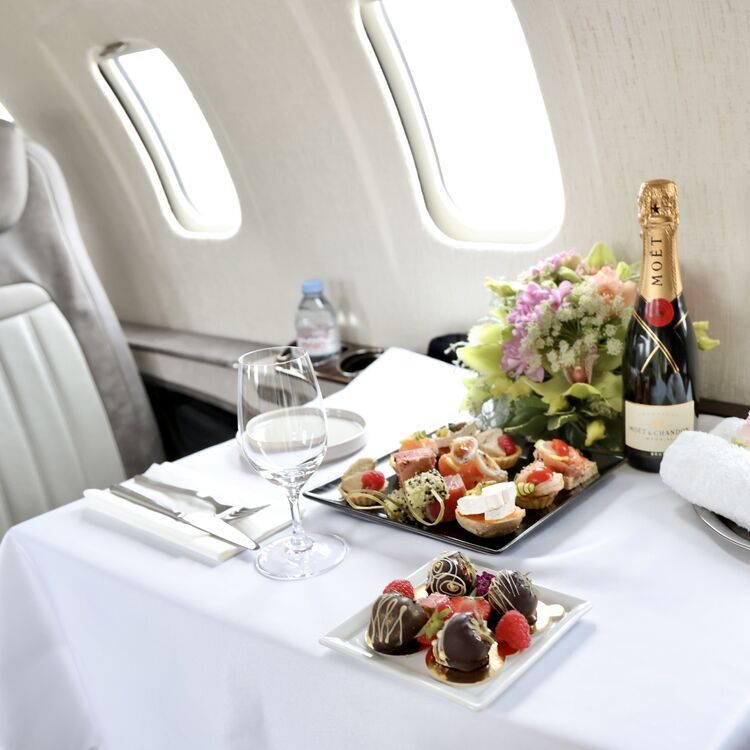Příjemný a pohodlný let doplňují polohovatelná kožená sedadla a možnost výběru teplého či studeného cateringu přesně podle Vašich přání.